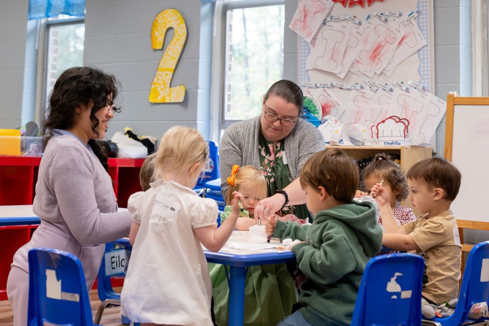 There are at least two approved adult staff/leaders in each room or environment, and in our preschool and elementary environments, our small group structure ensures that our leader to child ratio remains appropriate for the age of the children.